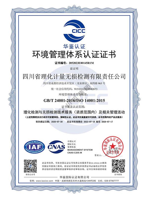 環(huán)境管理體系認證證書