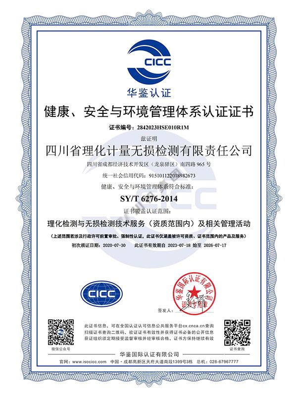 健康、安全與環(huán)境管理體系認證證書