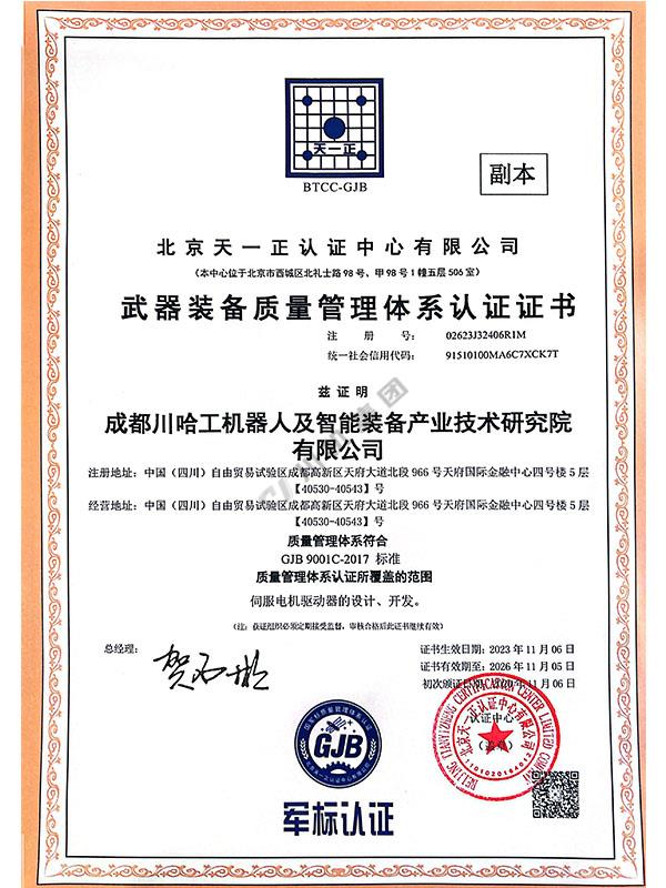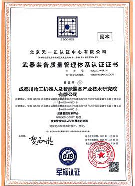 武器裝備質(zhì)量管理體系認證證書