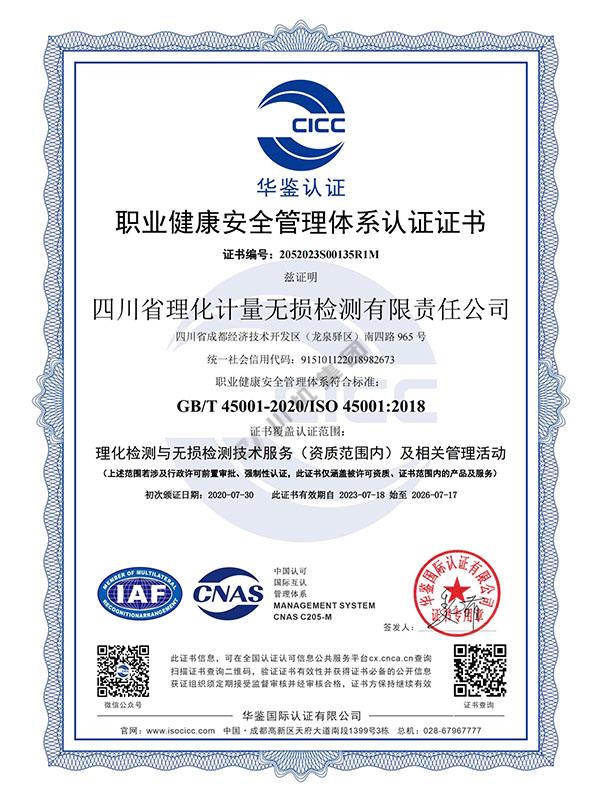 職業(yè)健康安全管理體系認證證書