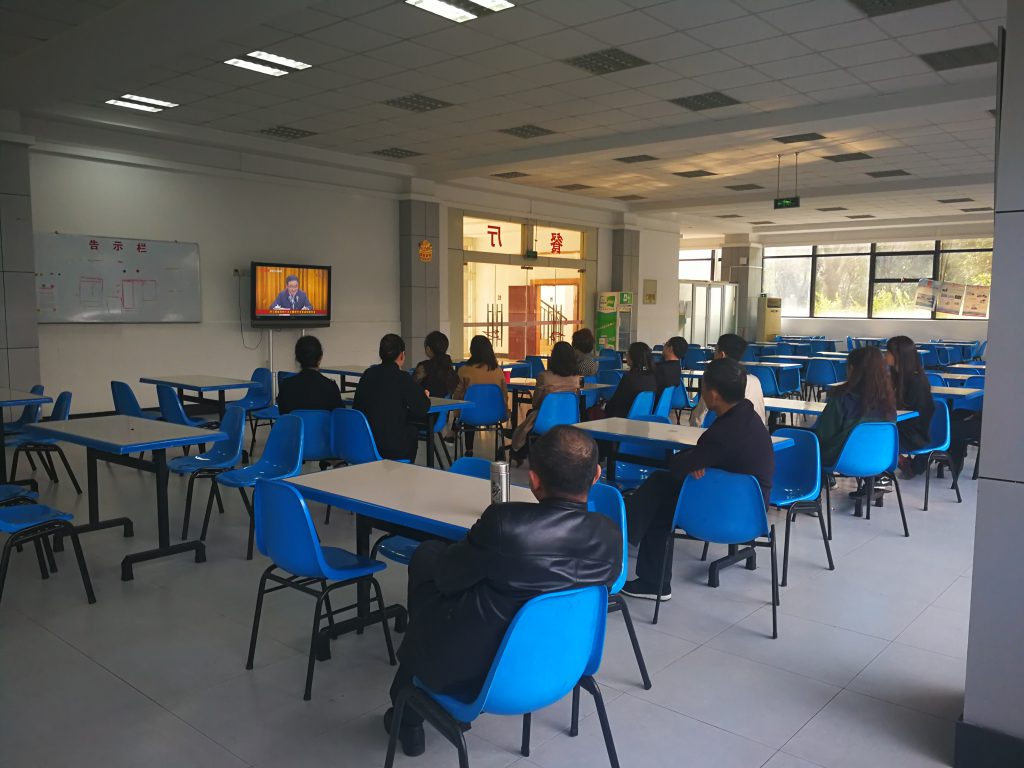 2017年11月8日上午9時(shí),按省直機(jī)關(guān)工委、省經(jīng)信委要求,院組織黨員、干部、職工認(rèn)真收聽收看了四川衛(wèi)視直播的貫徹黨的十九大精神中央宣講團(tuán)報(bào)告會(huì)實(shí)況。報(bào)告會(huì)由中央宣講團(tuán)成員、中央黨史研究室主任曲青山主講。